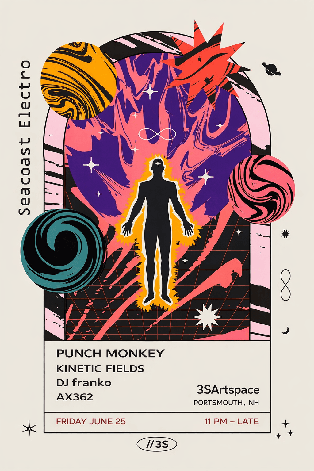 Kinetic Fields has been featured across Portsmouth, Boston, and Portland electronic scenes.